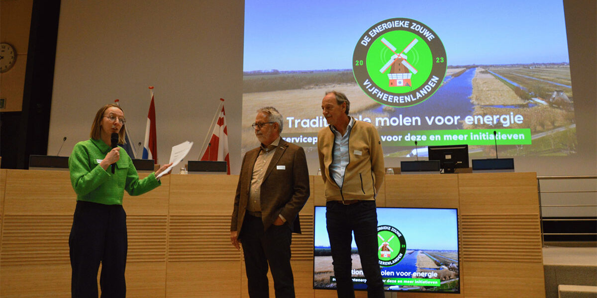 Ook De Energieke Zouwe uit Vijfheerenlanden, de derde genomineerde, ontving lovende woorden. DeZ werkt aan een generator waarmee traditionele achtkantige molens elektriciteit kunnen opwekken. “Jullie initiatief is nu nog kleinschalig, maar opschaalbaar naar vele polders in Nederland. Komende tijd presenteren jullie de definitieve businesscase en wij zijn heel erg benieuwd naar het vervolg’’.